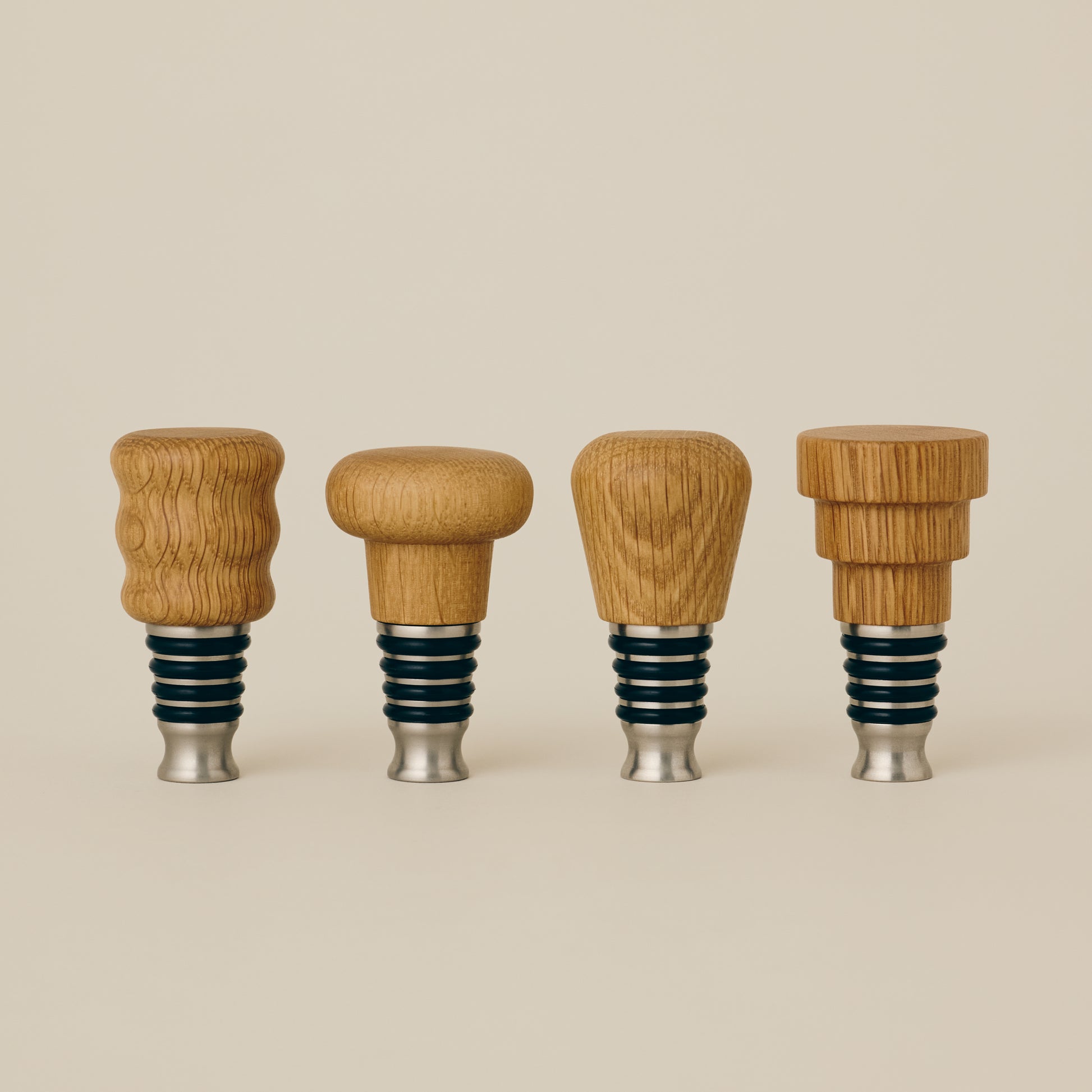 create an airtight seal (fitting standard 750ml bottles). These timeless stoppers seal and preserve the flavor of your favorite vintage. Choose from our four different styles. Each wine stopper stands on its own when placed upside down.